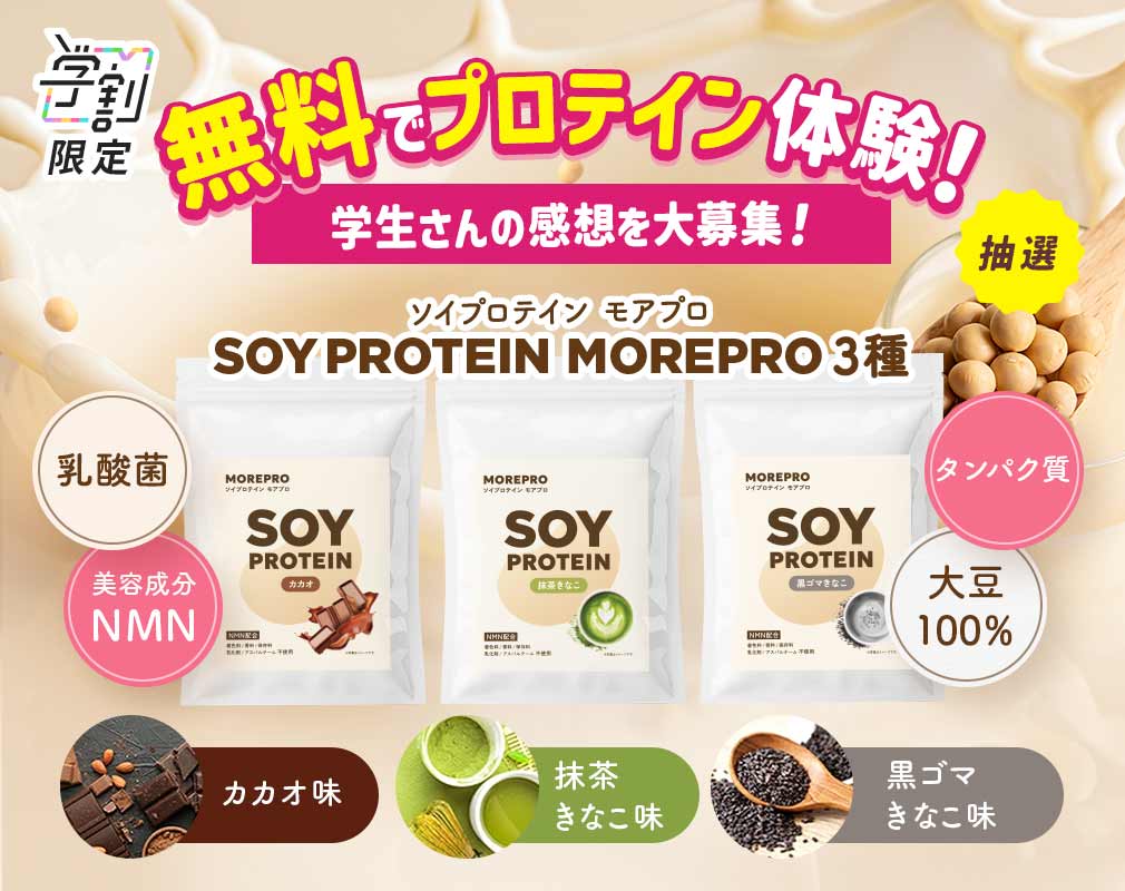 ソイプロテイン MOREPRO 60g 3種 (カカオ味 / 抹茶きなこ味 / 黒ゴマきなこ味)