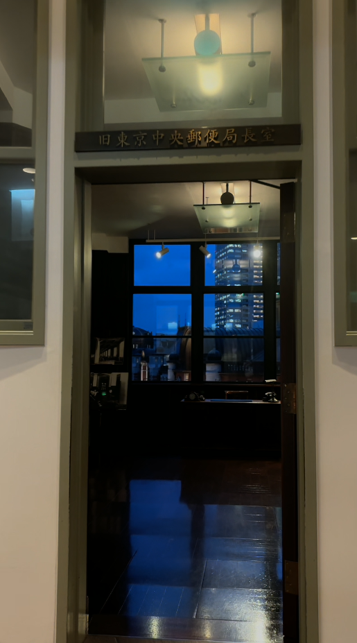 ここは、かつての東京中央郵便局長室を再現した歴史空間。