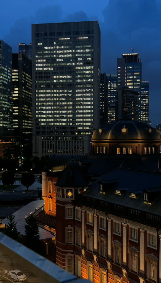 夜はライトアップされた東京駅が見えて、雰囲気がガラッと変わるのも魅力✨